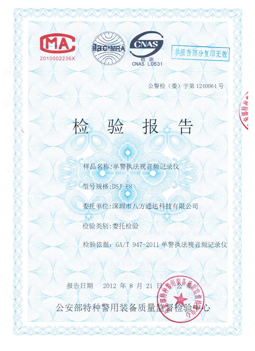 產(chǎn)品首次通過公安部檢測中心檢驗