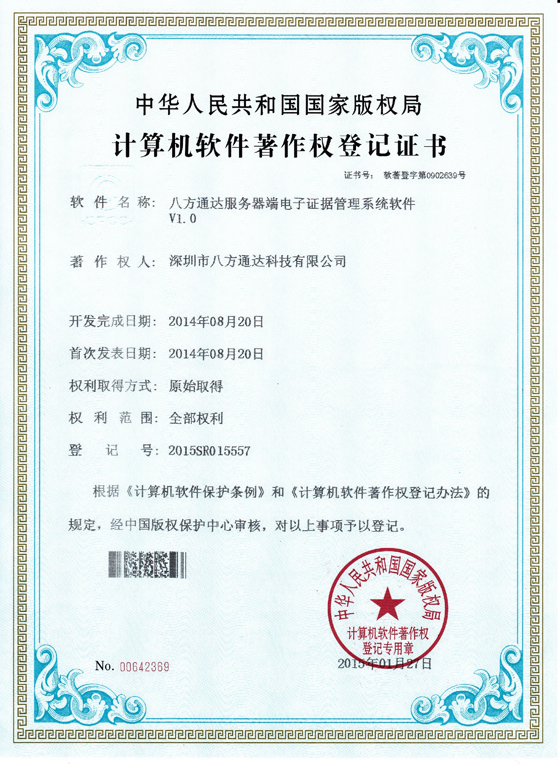 研發(fā)出首款電子單警執(zhí)法視音頻記錄系統(tǒng)管理平臺并申請了相關(guān)軟件著作權(quán)7項