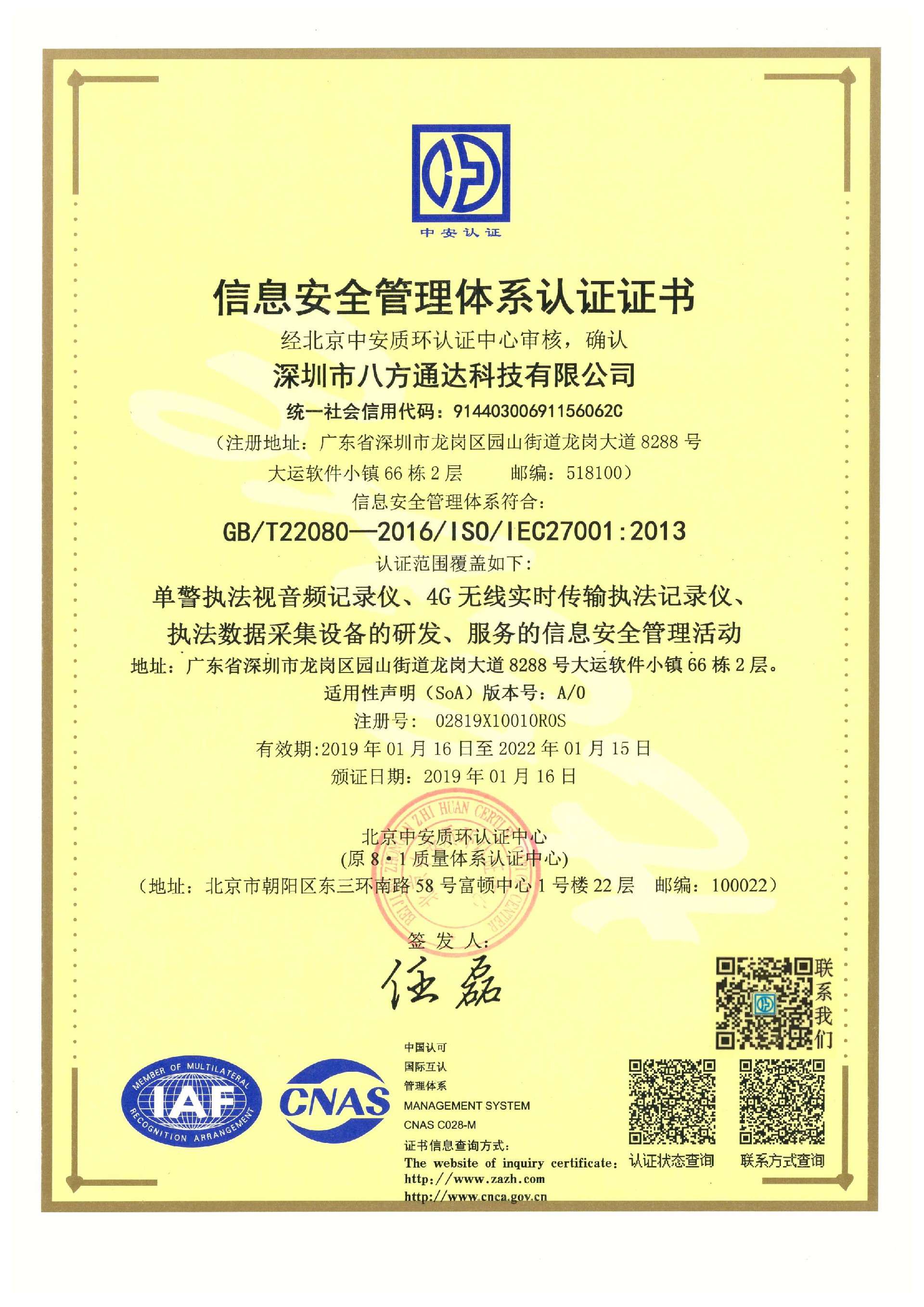 企業(yè)通過ISO270001、20000、安防工程一級資質(zhì)、商品售后服務(wù)體系、知識產(chǎn)權(quán)貫標等多項資質(zhì)審查與中國電子科技集團第五十四研究所在技術(shù)研發(fā)上達成深度戰(zhàn)略合作