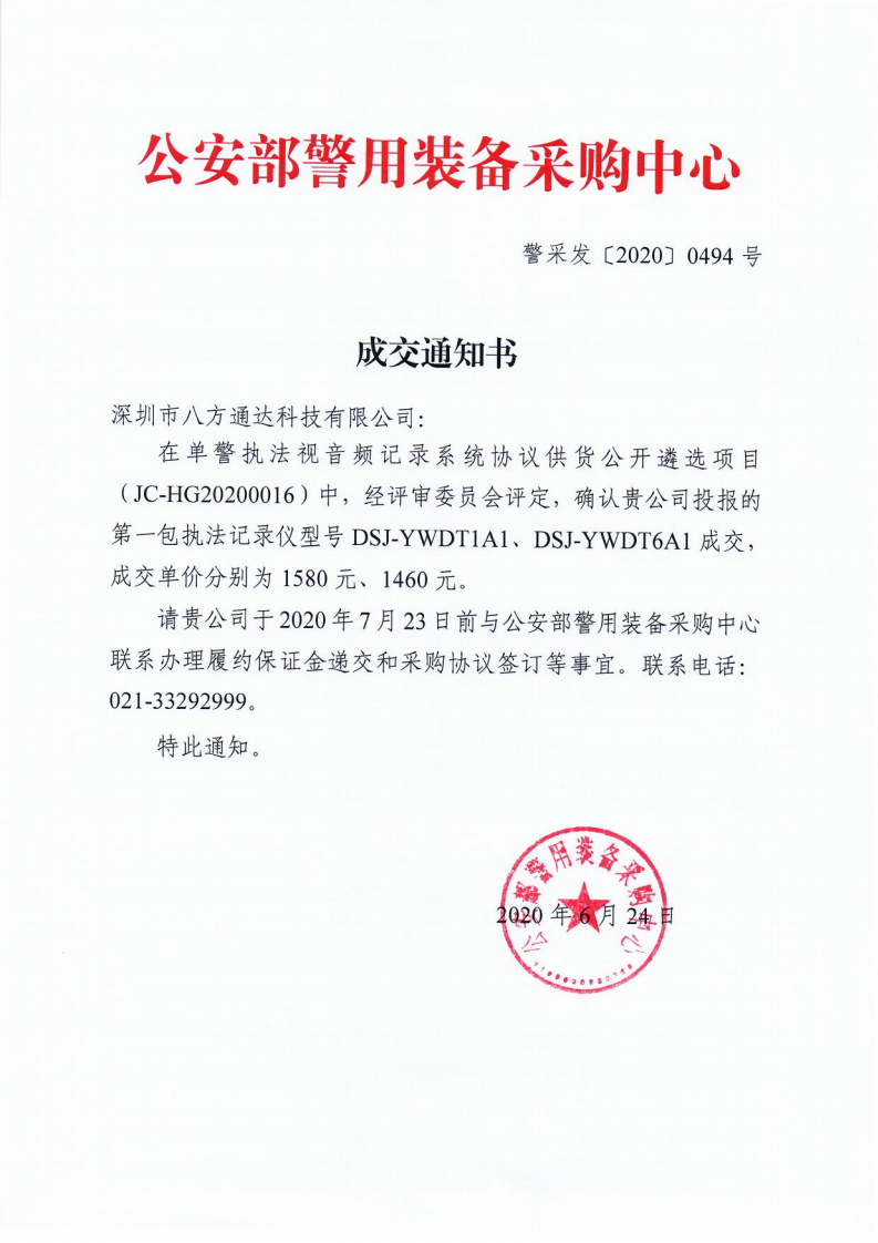 入圍2020年公安部警用裝備采購中心協(xié)議供貨單位